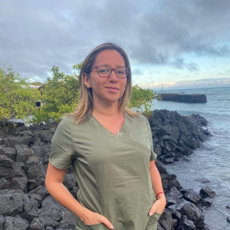 Nacida en la Isla Floreana, Adelita ha recorrido un camino de entrega y vocación al cuidado de los demás. Estudió enfermería en Cuba con especialidad en cuidados intensivos, fue ahí, en el contacto con los pacientes, donde descubrió su verdadera pasión: la psicología. Hoy, acompaña a sus pacientes con empatía, escucha activa y un profundo conocimiento de la realidad insular.